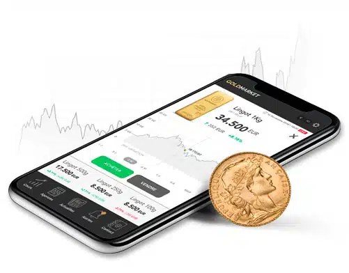 With the GOLDMARKET mobile application (Iphone and Android), follow the price of Gold and precious metals in real time. Check the prices of gold bars and coins and all the news on precious metals. Download our free application today in the App Store or Google Play.