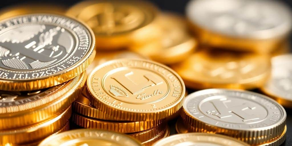 Pièces d'or et d'argent empilées avec élégance.Pin