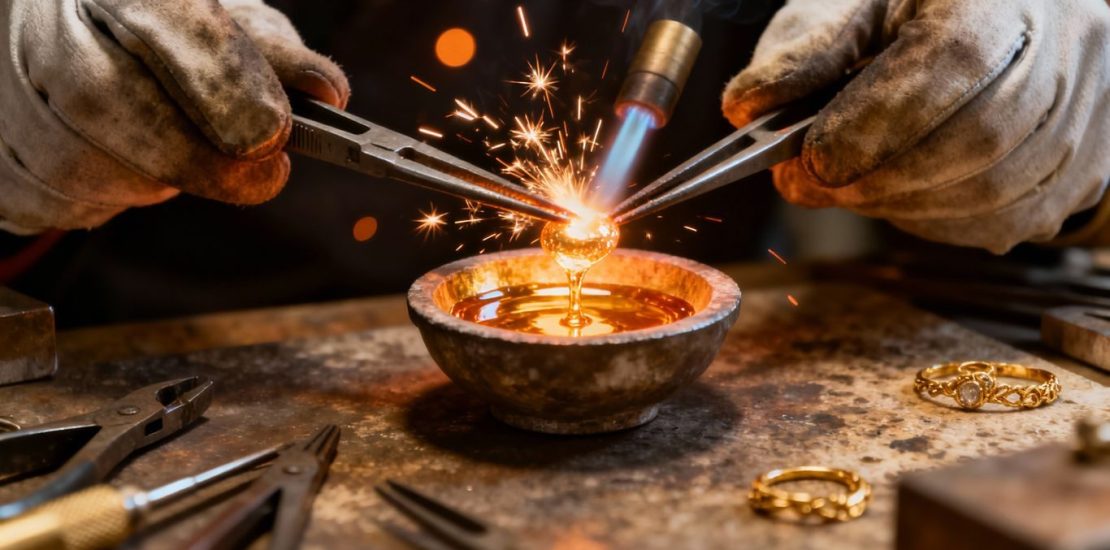 - Fonte et coulée : Transformer l’or solide en liquide pour le mouler.