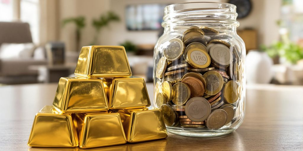 - Lingots et pièces d’or : C’est l’investissement physique par excellence. Vous achetez de l’or sous forme de lingots ou de pièces, que vous pouvez stocker chez vous (attention à la sécurité !) ou dans un coffre-fort. C’est tangible, mais ça implique des coûts de stockage et d’assurance.