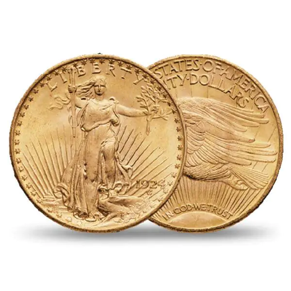 La 20 Dollars Or US Double Eagle Or dit Saint Gaudens, est une pièce de monnaie américaine. Frappée pour la première fois en 1907, le Double Eagle a été produit en 175 millions de pièces depuis 1907. La 20 Dollars Or US Double Eagle fait 34,1 mm de diamètre et pèse 33,44 grammes. Pure à 900/1000, cette pièce est un produit d’investissement par excellence.