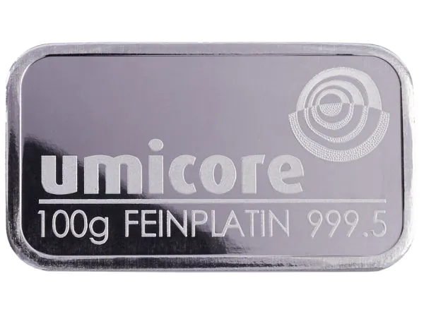 Des lingots de Platine 100 Grammes UMICORE certifiés
